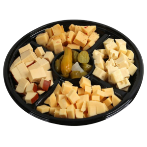 نبدأ بترتيب مكعبات الجبن أولًا على صينية خشبية، ثم نضيف الخضار (البندورة والخيار)، والجوز، والعنب، والمشمش المجفف.