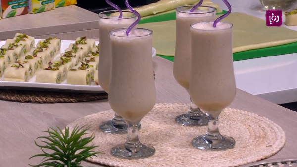 نسكب في أكواب، ونزين بأوراق النعناع، ثم نقدم.