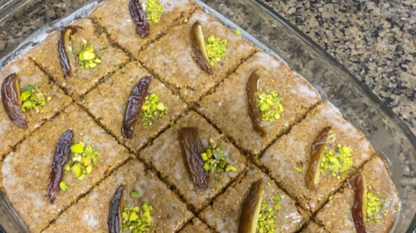 نزين الصينية بطبقة من جوز الهند وطبقة من جريش بسكويت الشوفان ثم نجهز الجلي ونضعه عليه بعدها نزين الحلا بجوز القلب نضع الصينية بالبراد لمدة نصف يوم ثم يقدم صحتين وعافية