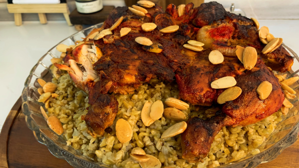 ننظف الدجاجه من الزنخة ونضعها في ماء مغلي ونضع عليها البهارات ما عدا الثوم و الكزبرة ونصف مقدار الزيت أو السمن المستخدم في الطبخ