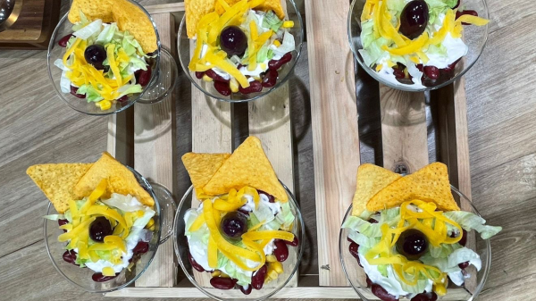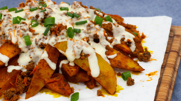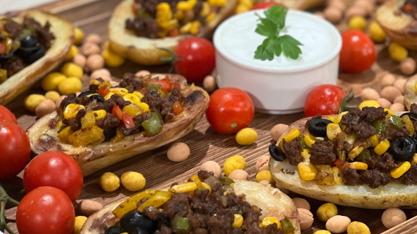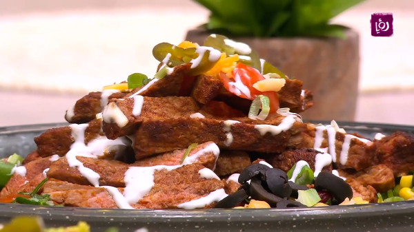نتبل شرائح الستيك المقطعة ناعماً ببهارات التاكو.