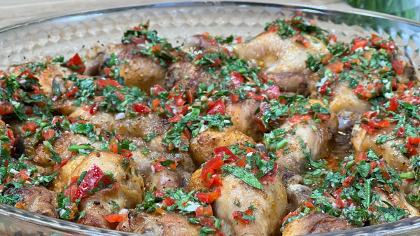 نضيف كبدة الدجاج المقطعة ناعماً ونطهوها حتى يتغير لونها.