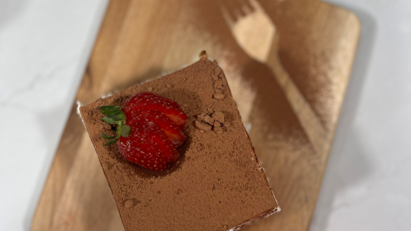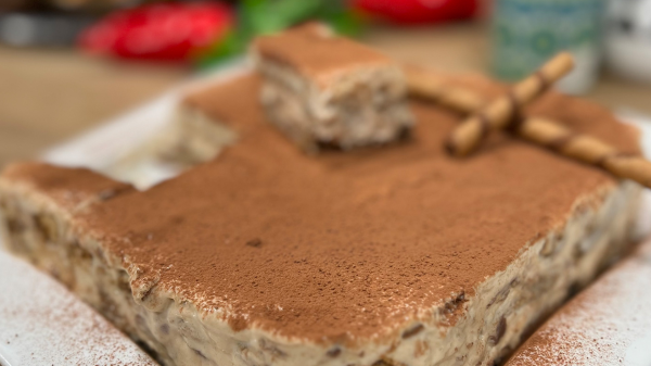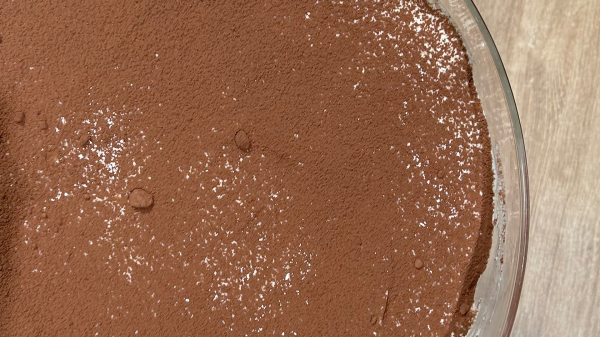 في وعاء كبير، تُخفق جبنة الماسكاربوني (بدرجة حرارة الغرفة) حتى تصبح ناعمة وخالية من أي كتل.